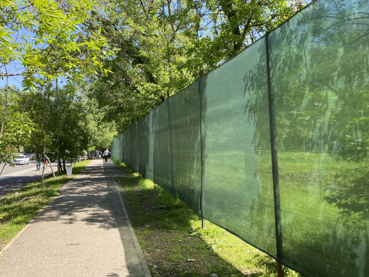 В конце марта парк оградили строительной сеткой. Сейчас там работает тяжелая техника, трактора и рабочие.
