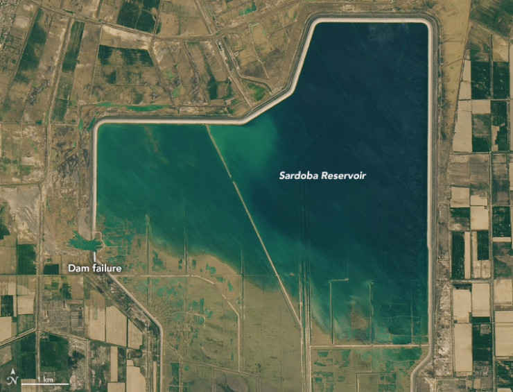 Национальное агентство США по аэронавтике и исследованию космоса NASA опубликовало спутниковые съемки территорий Узбекистана и Мактааральского района Туркестанской области Казахстана. На них показано, что было до и стало после того, как прорвало плотину Сардобинского водохранилища, передает Tengrinews.kz со ссылкой на агентство.