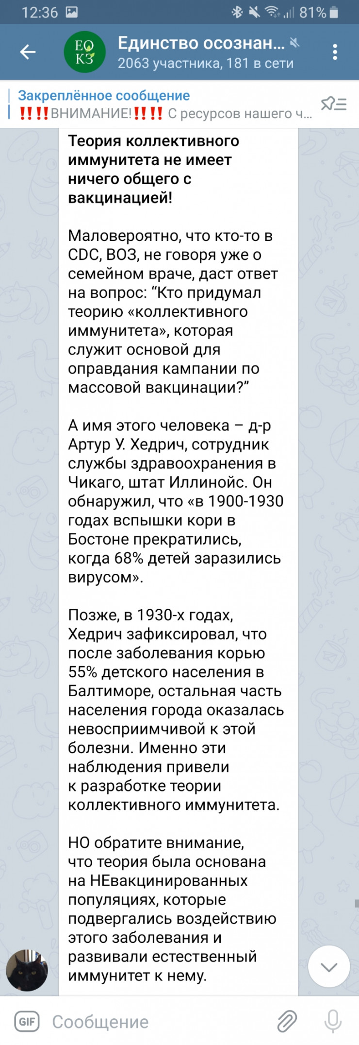 По информации портала, в рассылке, которая распространяется в Тelegram, приводятся отрывки из заметки с названием "Теория коллективного иммунитета не имеет ничего общего с вакцинацией". По мнению автора рассылки, доказательством этого утверждения служит вывод из исследования доктора Артура Хедридча о заболеваемости корью в отдельных регионах США: