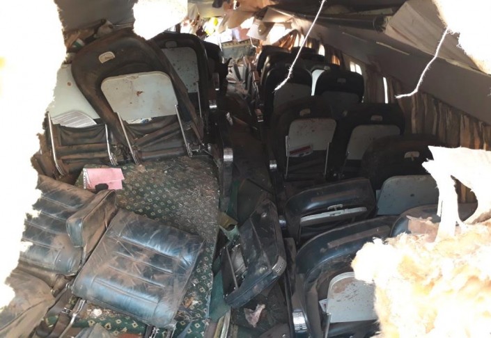 В Сети также появились фото изнутри пассажирского самолета. На кадрах видны покореженные кресла на борту и разбросанные по всей округе части авиалайнера.
