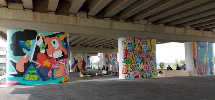 В столице появилось новое арт-пространство под мостом "Архар" по улице Сарайшык. Зона разделена на общепит и спортивные секции.