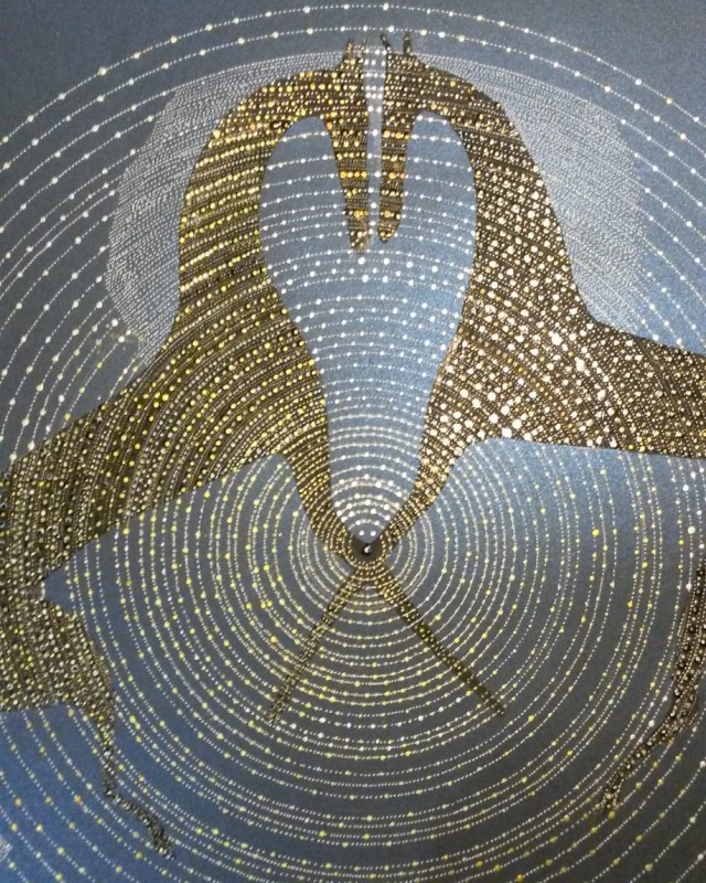 Картины Санжара Жубанова созданы в технике "звездная графика". Этот термин, как и способ исполнения, он открыл для себя после десяти лет опыта ментального рисования. Однажды он понял, что, рисуя точками, он оказывается в медитативном процессе, в тишине которого можно услышать себя.