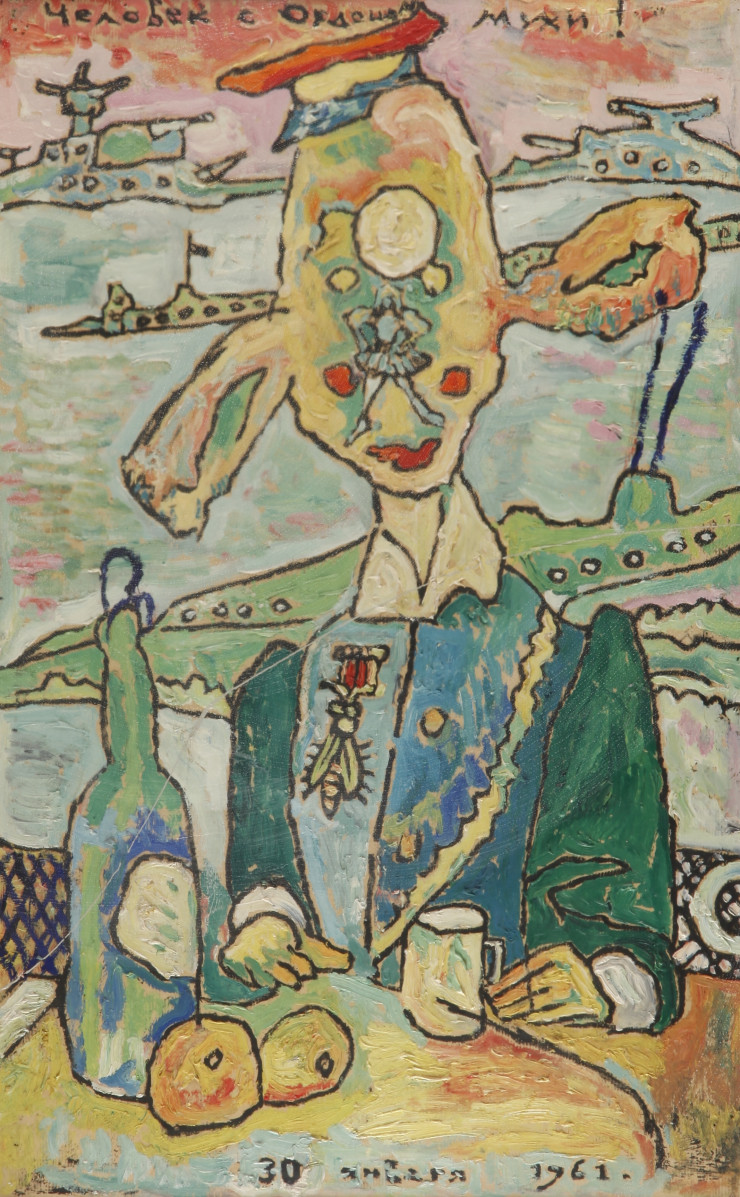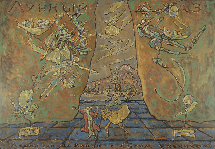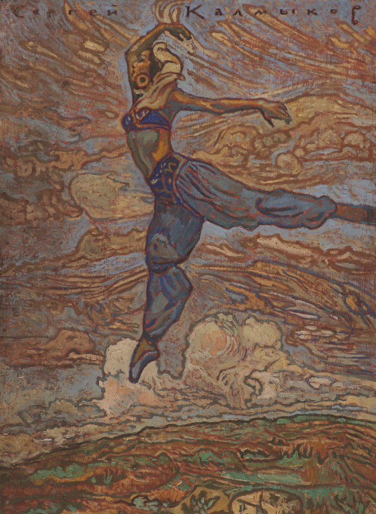 Плодотворная и многогранная художественная практика Калмыкова включала живопись, графику, иллюстрацию, математические и геометрические системы, декорации для Казахского национального театра оперы и балета, а также множество рукописей, в том числе фантастические описания будущего. Несмотря на выдающуюся деятельность, Калмыков так и не был признан при жизни и умер от истощения в одиночестве и безвестности в психиатрической больнице. Сюрреалистичный характер работ Калмыкова, также известный как магический импрессионизм, перекликается с тематикой биеннале этого года, проходящей под названием "Молоко снов" - в честь одноименной книги британской сюрреалистки Леоноры Каррингтон.