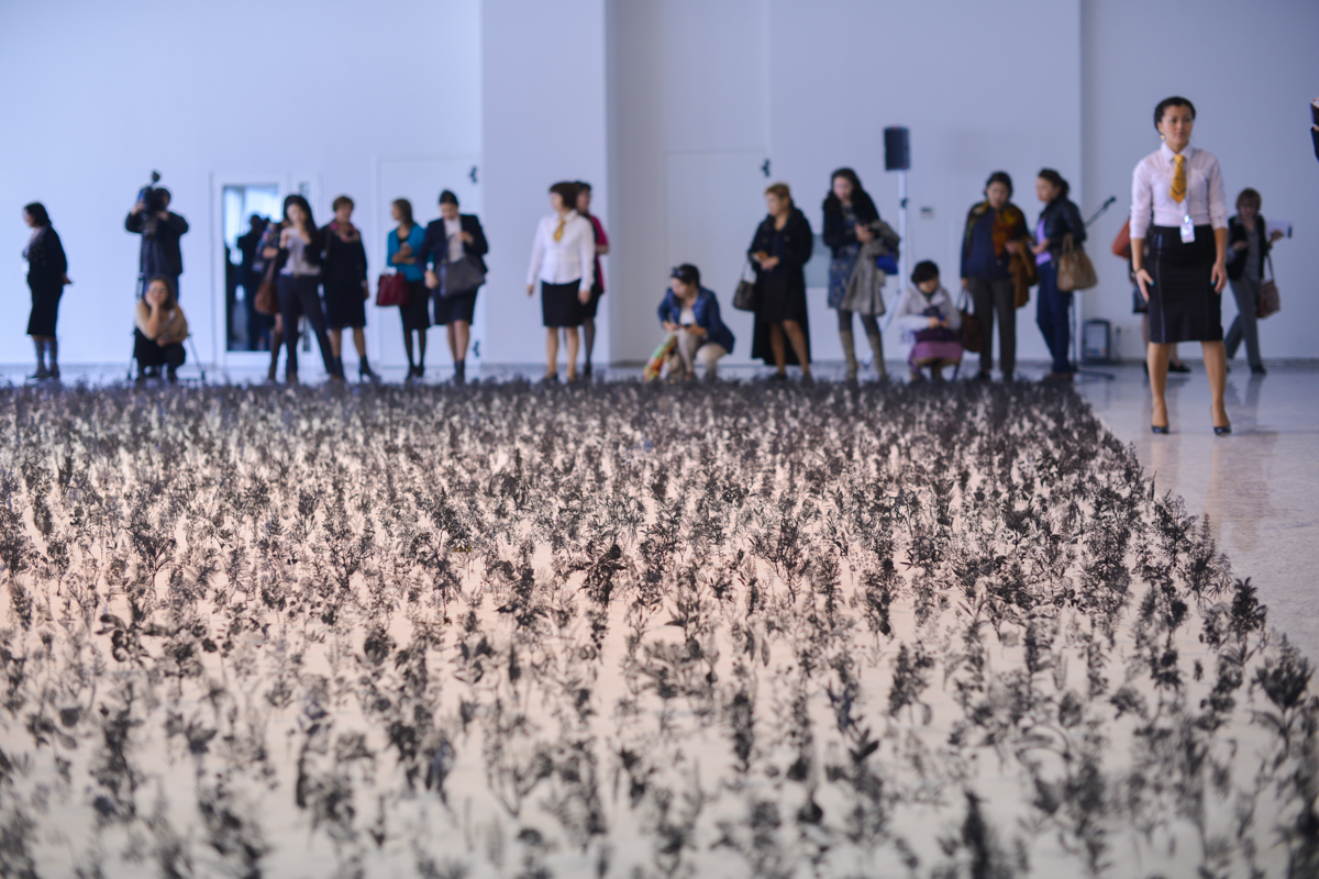 Известный британский скульптор Цадок Бен-Давид представил в Астане уникальную инсталляцию из 20 тысяч металлических цветов, передает корреспондент Tengrinews.kz.