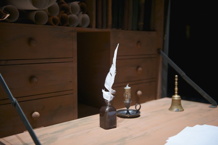 Один - для посуды, его уже наполнили чайными сервизами, расписными вазами; другой выполняет функцию письменного стола, его полки украшают свитки, книги, чернильницы, подсвечники. Есть еще один необычный шкаф: в нем спрятан… скелет. Для чего он? Мастера секрет не раскрыли, ответили: "Придете на спектакль и сами все увидите".