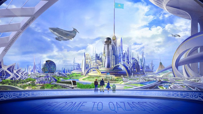 "Летающие автобусы и реактивные самокаты". Каким Казахстан видят художники через сто лет