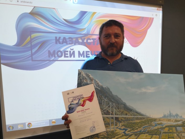 "Я не ожидал выиграть, потому что в конкурсе было много участников. Мне очень приятно, что мою картину оценило именитое жюри. Я хотел показать образ родных степей, гор, развитие высоких технологий и чистую окружающую среду в стране, в которой мы живем. Все для людей, хорошая экология и мир. Есть стимул продолжать творить в этом направлении", - сказал Станислав.