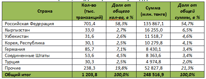 Основным источником переводов денег в Казахстан является Российская Федерация.