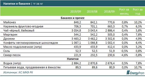 Напитки и бакалейные товары практически не показали роста цен. Сахар, к примеру, подешевел сразу на 4,6 процента за месяц.