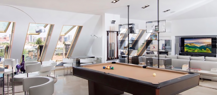 Как передает источник, трехэтажный особняк включает в себя тренажерный зал, теннисный корт, футбольное поле, несколько бассейнов, кинозал, библиотеку и множество других помещений для проведения досуга. Дом занимает площадь в 380 квадратных метров.