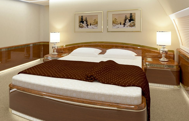 Весной 2015 года в Сети появились фотографии нового президентского борта. Как видно на снимках, большая часть интерьера самолета отделана позолотой, включая туалет и раковину в ванной комнате. На борту имеется конференц-зал, спальня с кроватью размера king-size, тренажерный зал. Мебель и интерьер декорированы в неоклассическом стиле, самолет также оснащен просторным офисом и огромным столом для совещаний с золотой отделкой, окруженной кремовыми кожаными сиденьями.