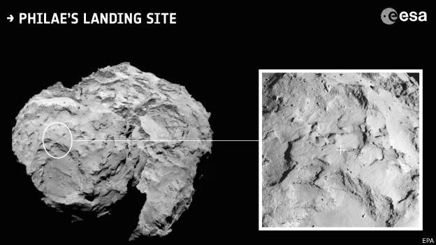"Розетта" попытается отправить на комету зонд "Фила", чтобы взять пробы грунта. В конце прошлого месяца ученые отобрали несколько потенциальных мест для приземления зонда. В ходе последней специально созванной конференции руководство европейской миссии остановило свой выбор на участке J.