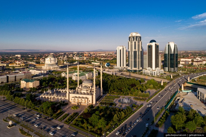 Фотограф из Новосибирска Слава Степанов на кадрах запечатлел основные достопримечательности главного города Чечни - площадь Ахмата Кадырова, мечеть "Сердце Чечни", проспект Владимира Путина, цветочный парк, бизнес-квартал "Грозный-Сити", а также резиденцию главы республики Рамзана Кадырова.