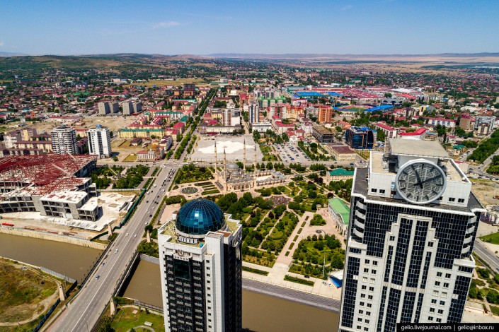 Мечеть "Сердце Чечни" - одна из самых больших мечетей России. Одновременно здесь могут молиться 10 тысяч человек, еще столько же вмещает площадь перед зданием и летняя галерея. В основе архитектурного решения лежит стамбульская Голубая мечеть.