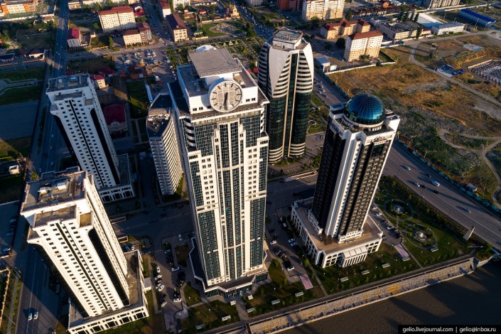 Бизнес-квартал "Грозный-Сити". В комплексе построено семь высотных зданий, среди которых деловой и бизнес-центр, гостиницы и жилые дома.