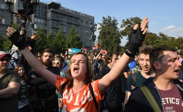 Несогласованная акция против внесения изменений в пенсионное законодательство проходит в центре Москвы в воскресенье.