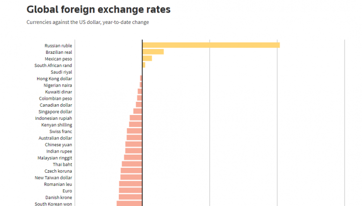 - Самая сильная валюта в мире: рубль, которого десятилетиями избегали даже россияне из-за его слабости и волатильности, на сегодняшний день является самой эффективной валютой в мире по отношению к доллару США с начала года.