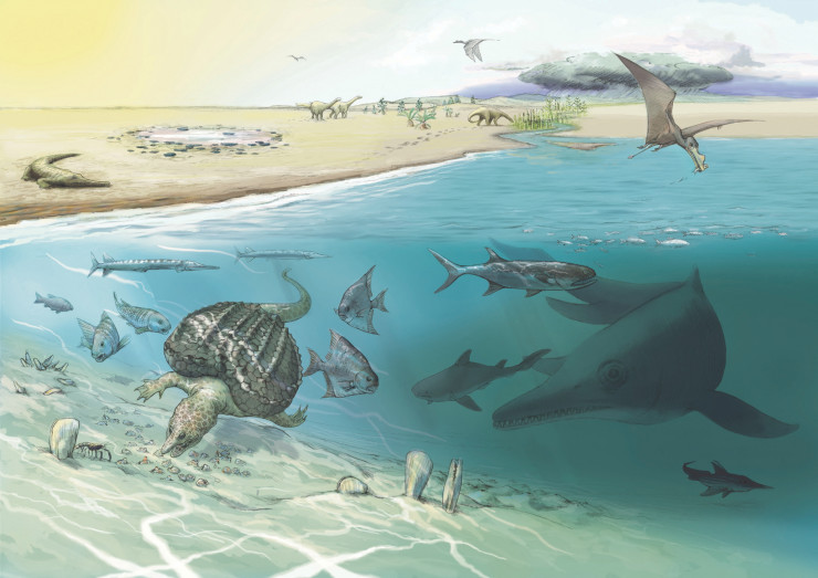 Ихтиозавры - что буквально переводится с древнегреческого как "рыбья ящерица" - самые крупные из когда-либо существовавших морских рептилий и имели удлиненные тела с относительно небольшими черепами. Считается, что звери впервые появились примерно 250 миллионов лет назад после пермско-триасового вымирания, в результате которого было уничтожено более 95 процентов морской жизни.
