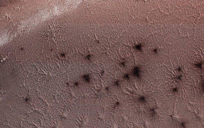 В результате поверхность планеты оказывается испещрена подобными образованиями, которые исследователи сравнивают с черными пауками, сидящими на своей ледяной "паутине".