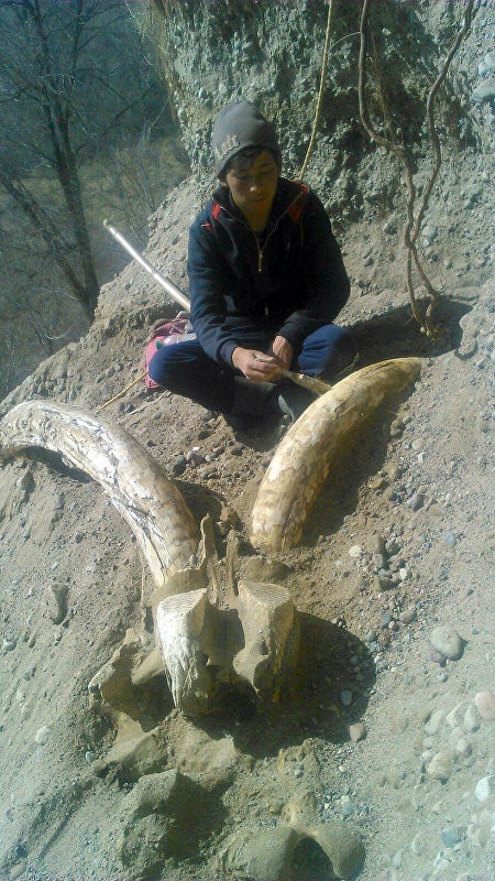 В ходе раскопок в сельской местности возле обрыва над рекой Жергалан были найдены фрагменты верхней части головы, бивни и зубы животного. Кому они принадлежат, пока неизвестно, однако уже есть две основные версии - это могут быть кости мамонта или мастодонта. Место обнаружения останков животного оцеплено, выставлена охрана.