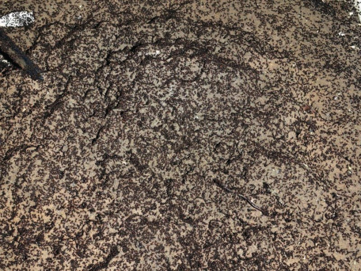 Спустя некоторое время насекомые вырвались на свободу и колония исчезла. Изучив тела погибших муравьев, ученые нашли следы многочисленных укусов и дыры в брюшной полости. Это указывает на то, что муравьи ели своих сородичей, чтобы выжить. Выживание и рост колонии в течение многих лет оказались возможны благодаря постоянному притоку новых муравьев из гнезда.