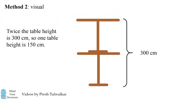 Второй - мысленно наложить оба стола друг на друга и опять же "сократить" животных. Таким образом, мы получаем высоту стола, это 150 сантиметров.
