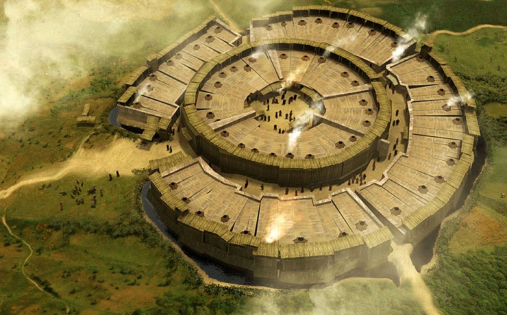 Аркаим - укрепленное поселение эпохи средней бронзы, относящееся к так называемой "Стране городов". Обнаружен случайно отрядом Урало-Казахстанской археологической экспедиции в 1987 году в месте слияния рек Утяганки и Караганки в Челябинской области.