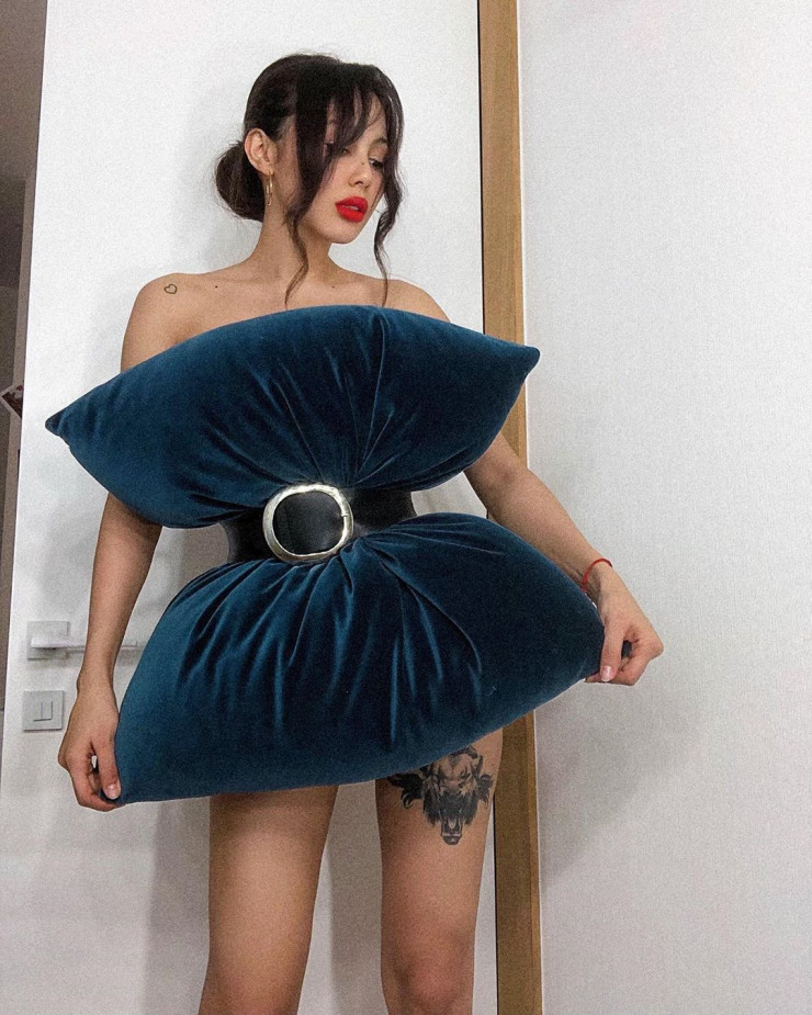 Instagram қолданушылары арасында #QuarantinePillowChallenge, қазақшалағанда "Жастық челлендж" кең тарап кетті. Қыз-келіншектер жастықтан көйлек жасап, киімін сәнді әшекеймен әсемдеп, карантин кезіндегі суреттерін парақшасына жүктеп жатыр. Жастықты денеге бекіту оп-оңай, оған қалың белдік қана керек.