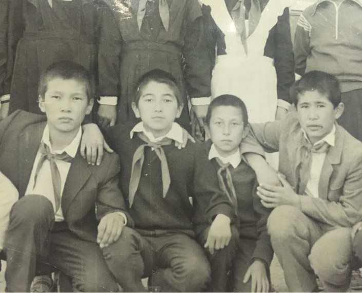 "Қазақстан, Ақтөбе қаласы, 32-мектеп гимназиясы, 1-сынып. 2, 3, 4 деген баға алатын балалар, жаман балалар, деп ойлайтын кезім. Мектепте ұнатып қалған қыз үшін ұлдармен төбелесетін кез ғой! Бақытты балалық шағым үшін: ата-анама, мектебіме, ұстаздарыма рақмет!!!! Ностальгия...", - деп жазған әнші жариялаған суретінің сипаттамасына.