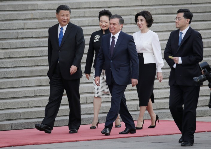 Председатель Китая Си Цзиньпин встречает Шавката Мирзиеева и Зироатхон Хошимову в Пекине. © Reuters