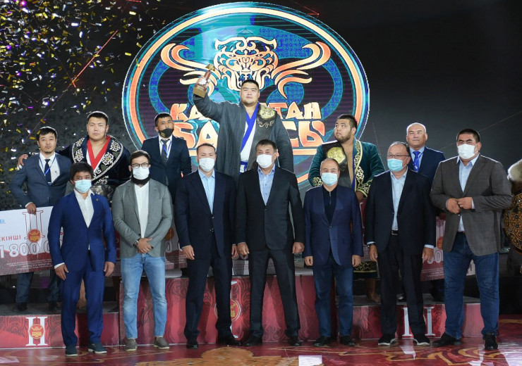 Галымжан Кырыкбай получил денежное вознаграждение в размере 5,5 миллиона тенге и серебряный пояс. Обладателю третьего места - борцу из Мангистауской области Нурдаулету Жарылгапову вручили 1,8 миллиона тенге и бронзовый пояс.