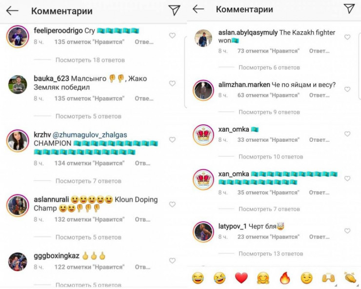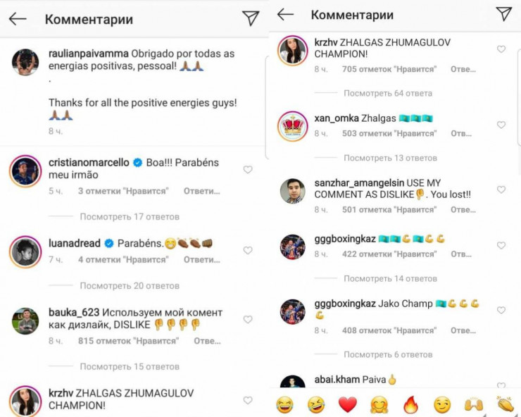 Некоторые из казахстанских фанатов позволяли себе маты на казахском языке и оскорбительные смайлы. В перепалку вступали бразильцы, которые на английском призывали казахстанцев плакать. Один из фанатов припомнил Пайве удар в область паха и перевес, за который перед боем он лишился 20 процентов гонорара: "Че по яйцам и весу?"