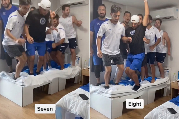 Спортсмены из сборной Израиля сломали антисекс-кровать в Олимпийской деревне Кадр: @bwangah / TikTok