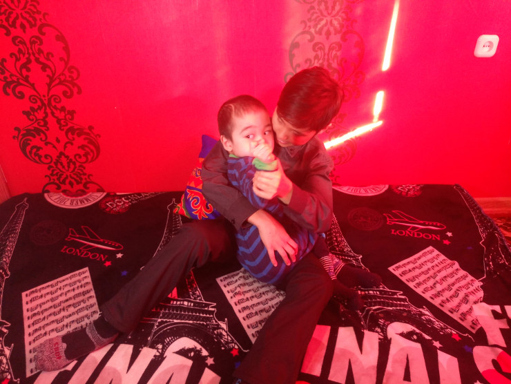По словам матери, Арулат часто нянчится с маленьким Бегарысом. На заботу и любовь старшего брата тот отвечает улыбкой.