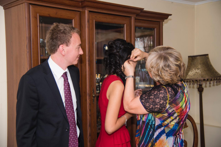 Ата-анам, жақындарым екеуміздің бас қосуымызға еш қарсы болған жоқ. Себебі әкем Орынбордың қазағы, өзі орысша тәрбие алған. Әкем маған: "Қызым, өзің қалай қарайсың? Шетелдің азаматы. Не істейсің? Ойың қандай?", - деп сұрады. Мен ойланып, "Әр ұлтта жақсы да, жаман да адам болады. Бірақ бұл жүрегімнің таңдауы. Егер сіз батаңызды берсеңіз, мен дайынмын" дедім. Әкем менің шешімімді құптады. Күйеуім мен әкем өте жақсы тіл табысып кетті. Ал әпкем мен секілді біраз жыл шетелде тұрған, білім алған, көзі ашық адам. Сондықтан ол жағынан проблема болған жоқ.