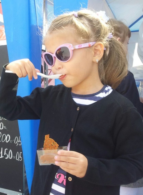 Эта девочка одна из первых отведала мусс из настоящего швейцарского шоколада. Фото Tengrinews.kz©