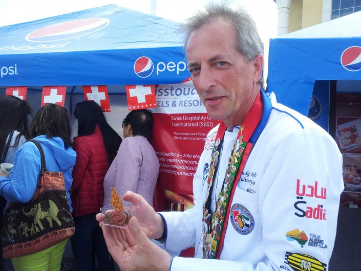 Повар рассказал, что он впервые в Казахстане, но уже успел распробовать казахскую кухню. "Изучать культуру другой страны можно и через кухню. Вчера мне предоставилась возможность побывать на казахской свадьбе, где подавали бешбармак с мясом. Мне очень понравилось. Кстати, в Швейцарии мы тоже едим конину. Не так много, как здесь, но все же употребляем", - сказал Андреас и уточнил, что бешбармак он ел руками.