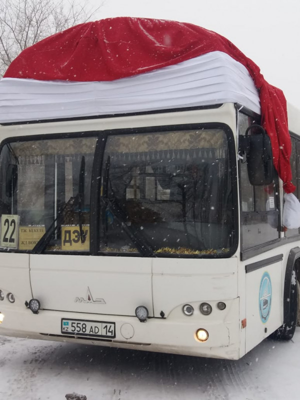 Маршрутный автобус в новогодней шапке появился в Павлодаре, передает корреспондент Tengrinews.kz.