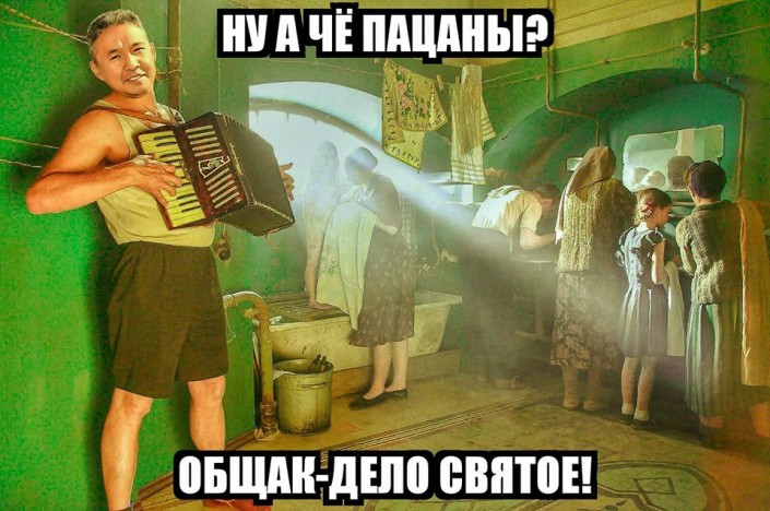 А кто-то вспомнил старый клип российской группы "Дюна" под названием "Коммунальная квартира".