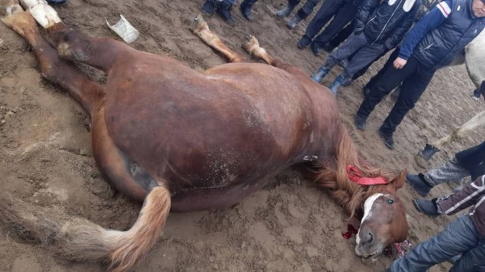 29 декабря в селе Манас Чуйской области Кыргызстана после участия в национальной игре улак тартыш умер самый большой конь в республике по кличке Барон. Об этом изданию Sputnik Кыргызстан сообщил хозяин животного Алмаз Колдошев.