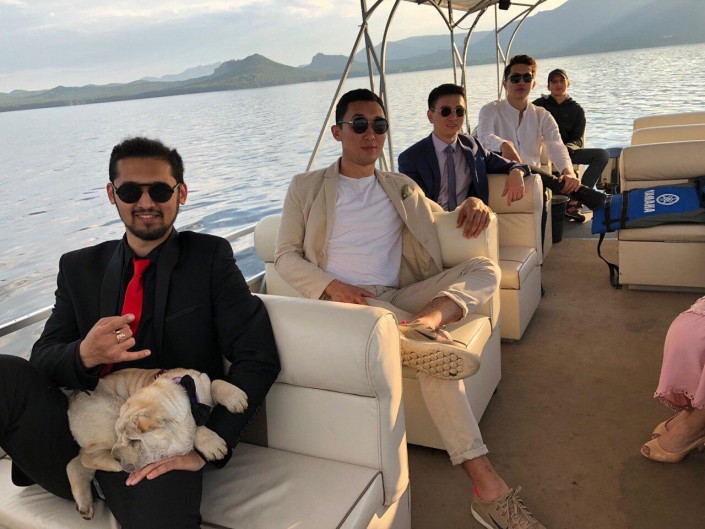 "Мы взяли с собой костюмы, еду, платье, фату. Надели костюмы, девушки надели платья, и все отправились кататься на катере. Поездка по озеру была для нас бесплатной, это был подарок друга. Капитан нашего судна остановился в красивом месте посередине озера. Светило солнце, горы вокруг, все было очень романтично, даже волшебно. Там мы прочли друг другу клятвы. Капитан корабля зачитал речь, объявил нас мужем и женой, мы обменялись кольцами и поцеловались", - рассказал Куаныш.