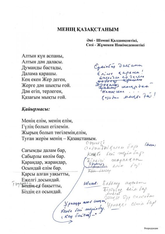 4 июня этого года Акорда опубликовала текст Гимна с правками Назарбаева.