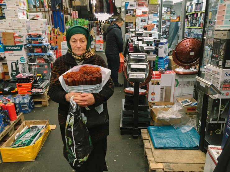 И действительно, на базаре хоть и тихо, но торговля идет. Покупатели с сумками и тележками куда-то спешат.