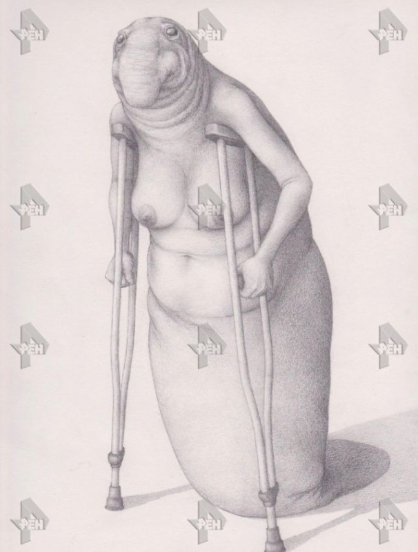 В эксклюзивном интервью РЕН ТВ художница рассказала, как и зачем создала Ждуна и показала первый эскиз мема. Оказалось, что Ждун изначально был женщиной. Кроме того, на эскизе присутствовали костыли.