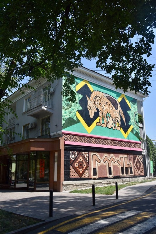 Новый мурал с тенгрианскими мотивами появился на фасаде одного из домов в Алматы, передает Tengrinews.kz.