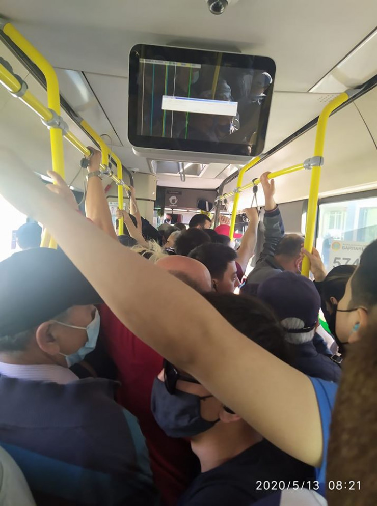 "Нас заверили, что будет контролироваться количество людей в автобусах и соблюдение санитарных норм. Председатель CTS Бекмырза Игенбердинов также обещал нам выполнение всех санитарных норм и предписаний главного санитарного врача и увеличение количества автобусов. У меня вопрос: я живу не в том Нур-Султане? Почему с экрана телевизора вы говорите одно, а на деле происходит совершенно другое?" - возмутилась горожанка.