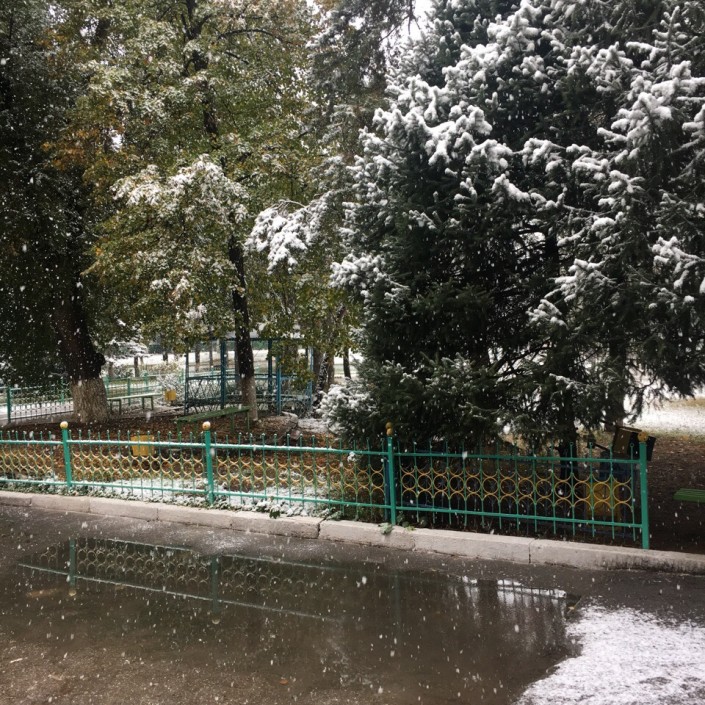 Снег пошел еще накануне ночью. Практически сразу он растаял. Осадки продолжились сегодня в первой половине дня.