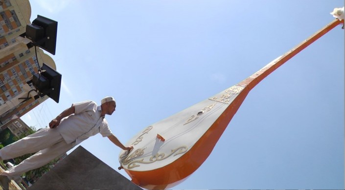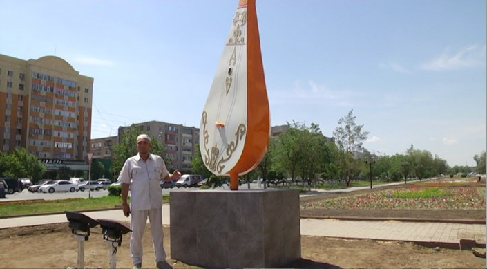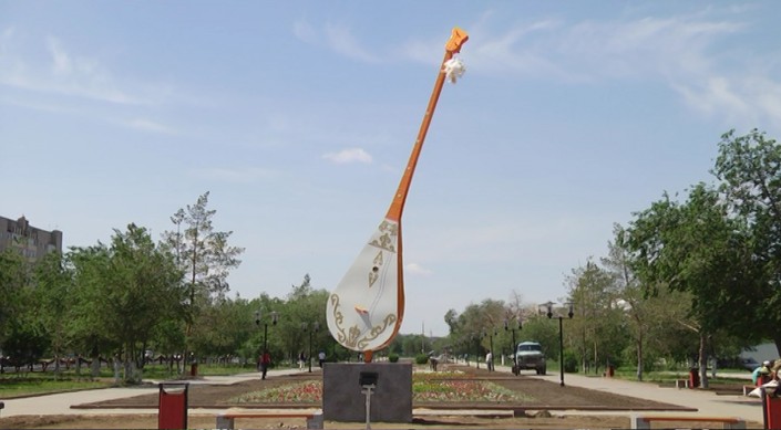 Стоит отметить, что это первая скульптура в городе, сделанная в виде национального музыкального инструмента. "На ее создание ушло 3 месяца кропотливого труда", - рассказал автор проекта Куатбек Есжанов.