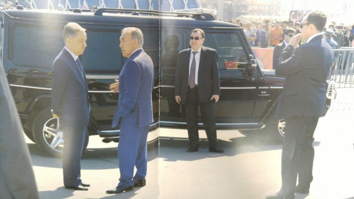 "А у тебя костюм казахстанского производства". Так подписана фотография, на которой Глава государства изображен с акимом Астаны Адильбеком Джаксыбековым и министром обороны РК Имангали Тасмагамбетовым. Этот снимок был сделан 1 декабря 2015 года после посещения Национального военно-патриотического центра в Астане.
