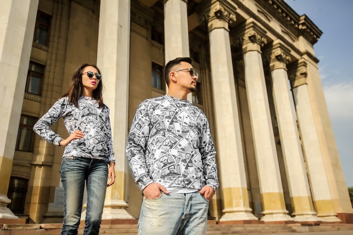Свитшоты выполнены из натурального хлопка, который дизайнер специально заказывала за границей. Они созданы в ограниченном количестве, цена такого свитшота - 25 тысяч тенге.